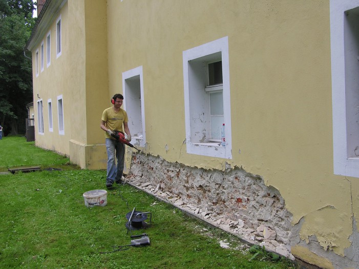 Kavaliershaus 1 A Nordseite erhält den zweiten Opferputz.