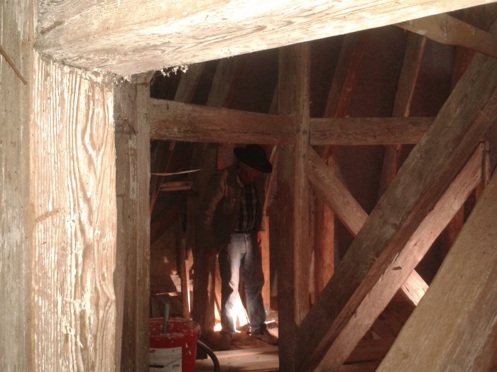 Die Fledermaustube im Südturm mit Bretterboden bestücken.