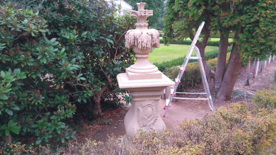 Restaurieren der Sandstein-Schmuckelemente.