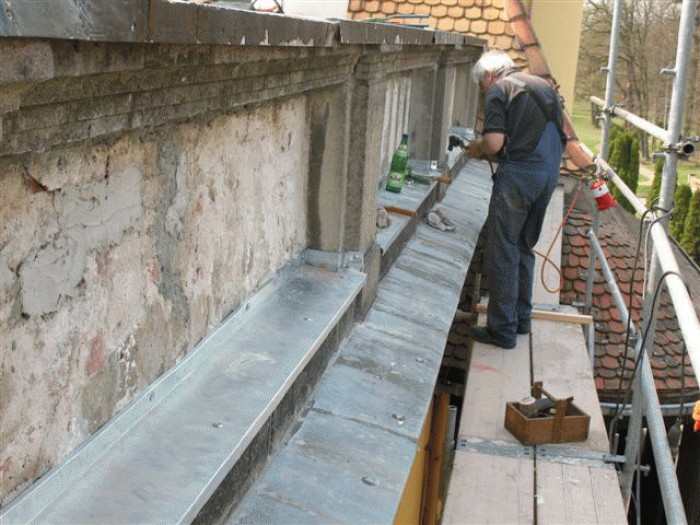 Verblechung der Mauerkrone in 14 Meter Höhe.