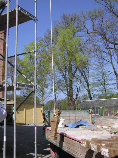 Die Geländersäulen der Terrasse im 2. Stock wurden nach unten gebracht und repariert.