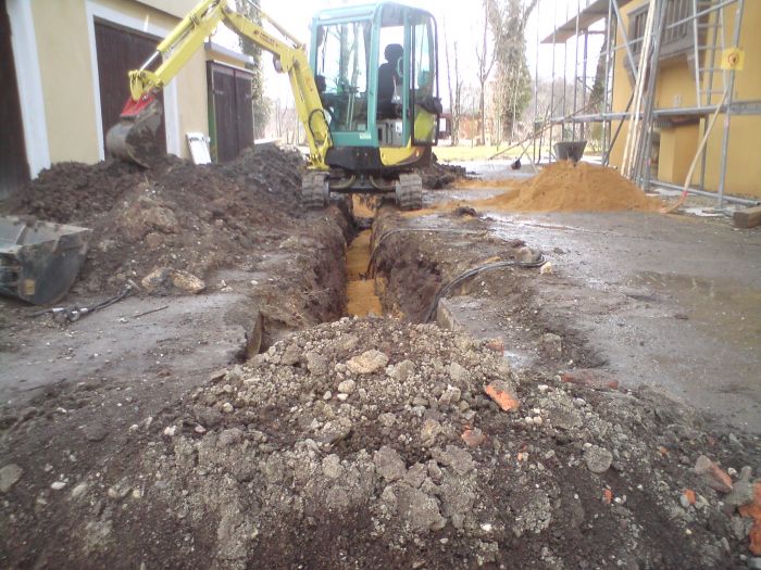 Herstellen der Verbindung vom Tiefbrunnen zur Wasserzisterne und zur Gartenwasserleitung mit Wasser und Strom 2010.