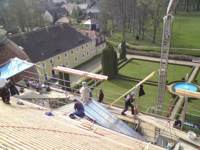 Generalsanierung des Schlossdaches 2010. Die emsigen Dachspengler.
